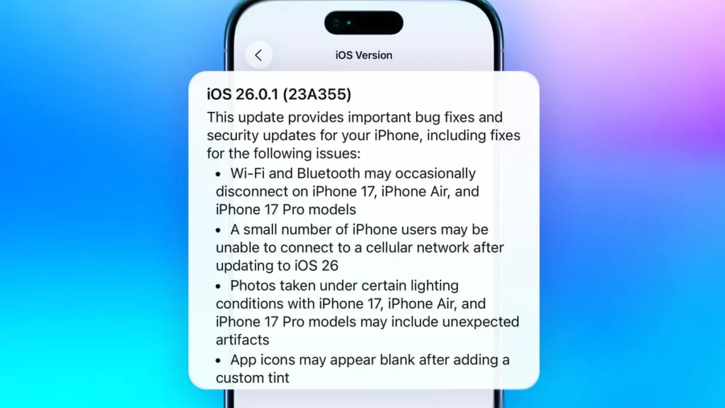 من المفترض أن يُصلح نظام iOS 26.0.1 مشاكل الشبكة الخلوية، من بين مشاكل أخرى تتعلق بالبلوتوث والواي فاي.