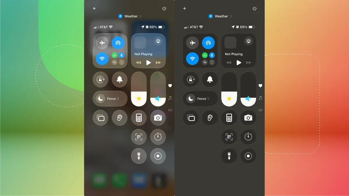 سيؤدي هذا إلى تعتيم أي قوائم أو عناصر متأثرة بتصميم الزجاج السائل، بما في ذلك تطبيقات مثل الرسائل ومركز التحكم.