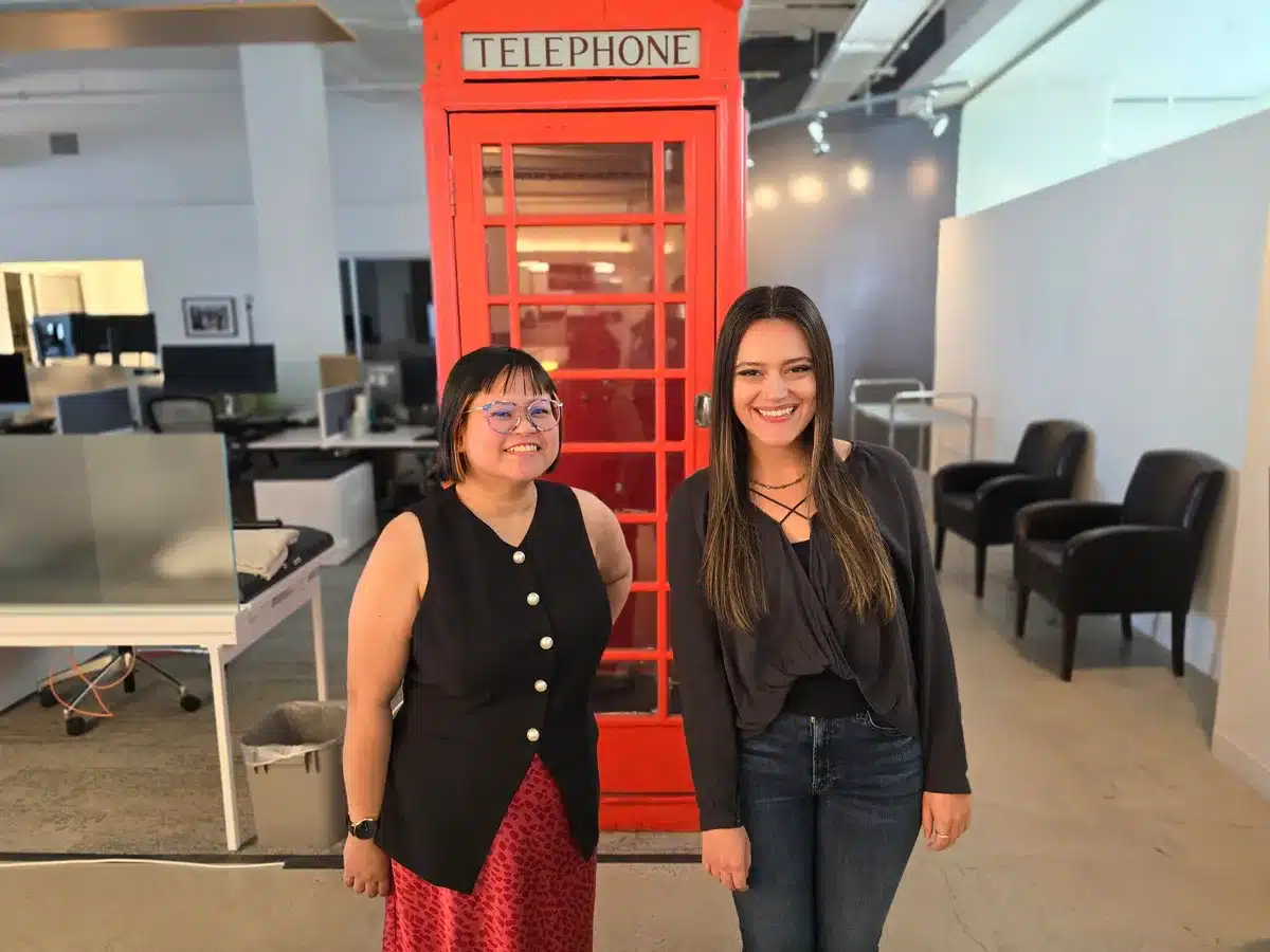 باستخدام وضع البورتريه على صور الأشخاص، تُظهر هذه الصور لزميلتي فيث تشيهيل وجيسيكا فييرو نفس السطوع في صورة S24 Ultra، ويظهر كابينة الهاتف في الخلفية بلون أحمر أكثر حيوية من صورة iPhone. في الواقع، أُفضّل صورة iPhone 16 Pro Max؛ فالألوان أغمق لكنها أقرب إلى الواقع، مما يُضفي ثراءً على الصورة من خلال إبراز سواد قميص فيث ولون أزرق بنطال جينز جيسيكا. تتميز كلتا الصورتين بخلفية ضبابية واضحة.