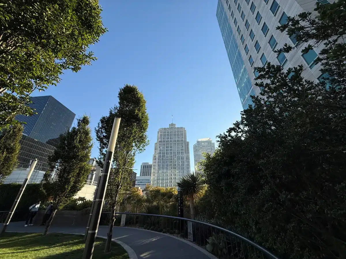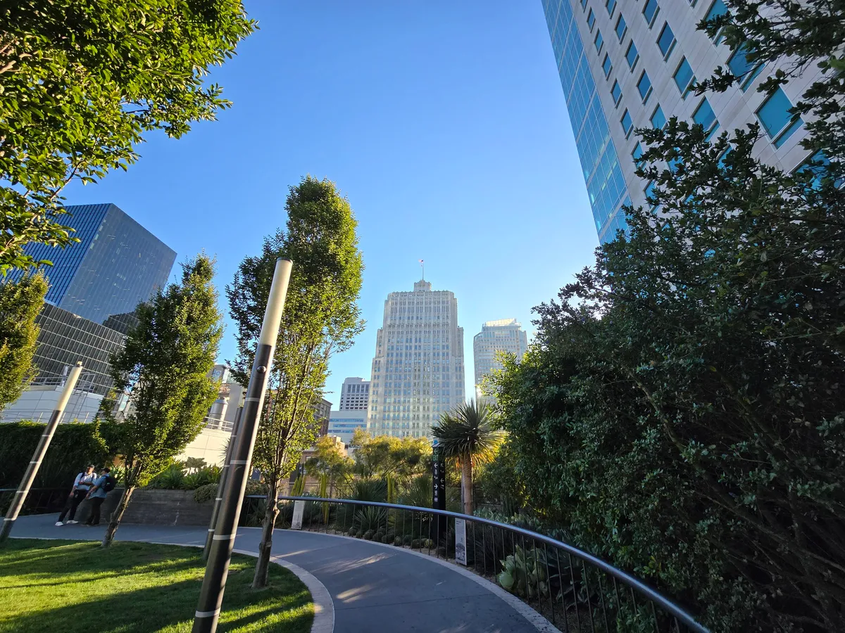 خلال نزهة بعد الظهر في حدائق يربا بوينا في سان فرانسيسكو، التقط كلٌّ من iPhone 16 Pro Max وGalaxy S24 Ultra هذه الصورة المتدفقة بوضوح. صورة S24 Ultra أكثر سطوعًا قليلاً في جميع الأنحاء، خاصةً بين الأشجار والشجيرات في الخلفية.